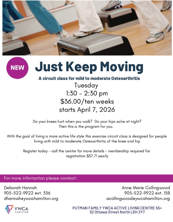 With the goal of living a more active life style this exercise circuit class is designed for people living with mild to moderate Osteoarthritis of the knee and hip.